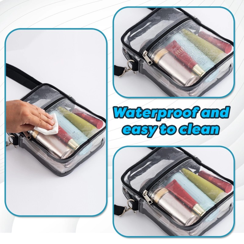 - Convenient front zipper pocket: Features a separate front pocket with a zipper for easy access to essentials, combining security and functionality in a clear, see-through design. Ideal for keeping smaller items like keys, cash, cards, and tickets organized