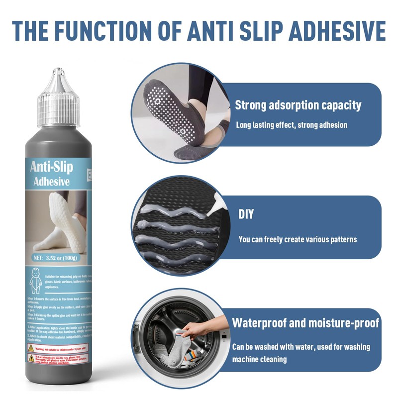 - WIDE USE: Anti slip glue has a wide range of applications. Anti slip glue can be used for bath mats, carpets, human socks, pet socks, appliance bottoms, hangers, and decorative items