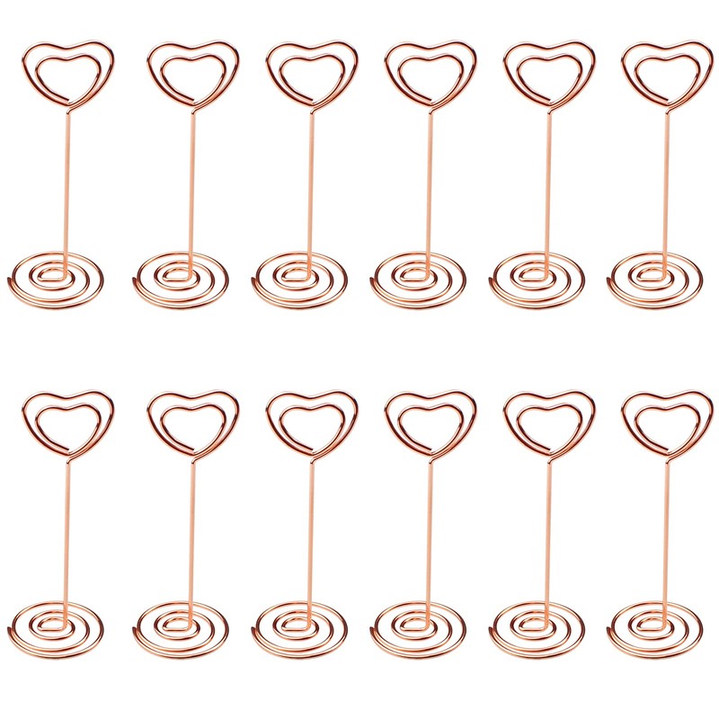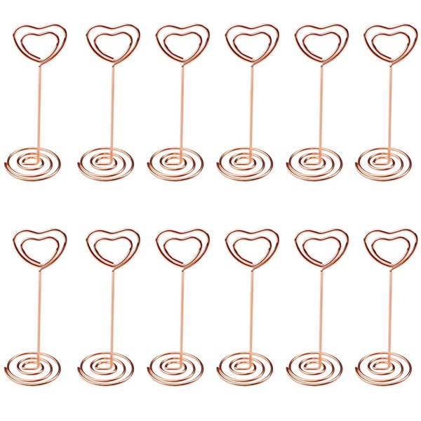 inodiref 12 Pieces Place Card Holders, Heart Shape Table Number Holders, Memo Holder Stand Clip, Photo Clip Holder Stand, for Weddings Party Table Decoration (Rose Gold)