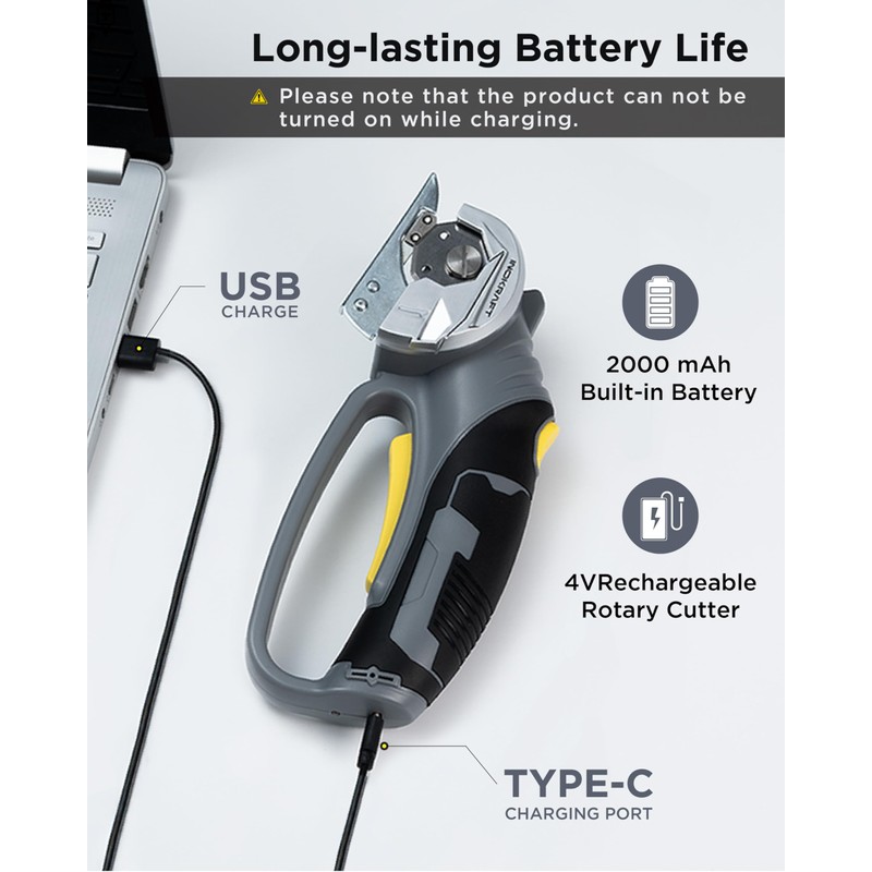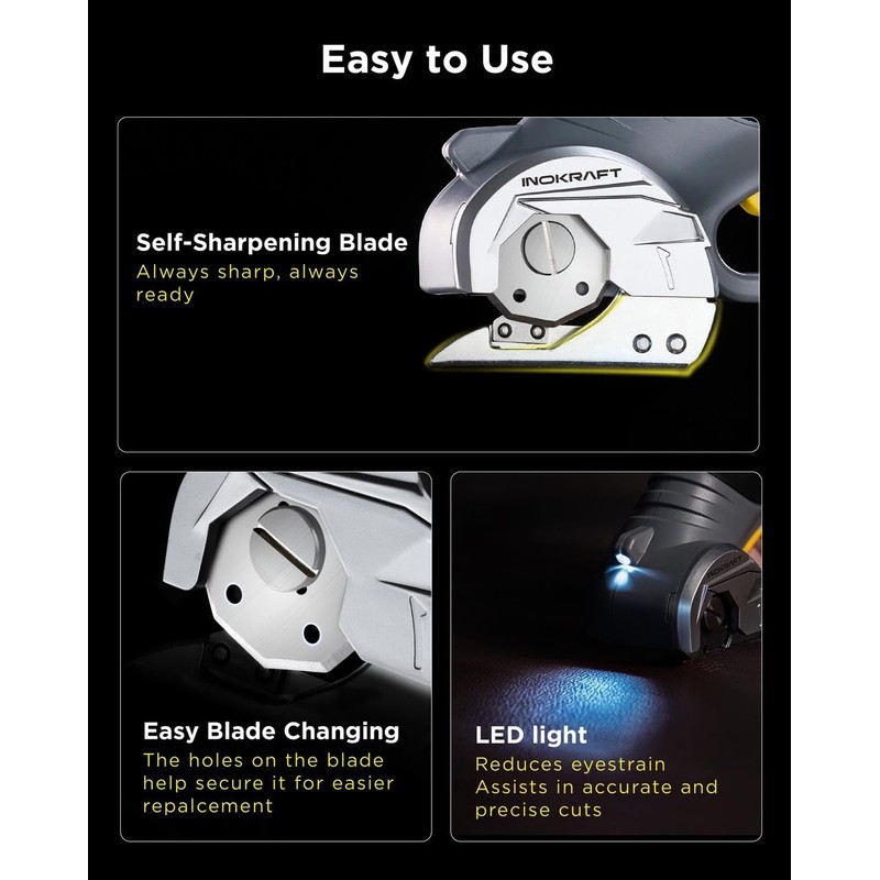 InoKraft Cardboard Cutter,Cordless Electric Scissors with Safety Button, 300 RPM High-Speed Rotary Cutter for Fabric, Cardboard, Plastic, Leather, Electric Box Cutter with LED Light, 4V Li-ion Battery