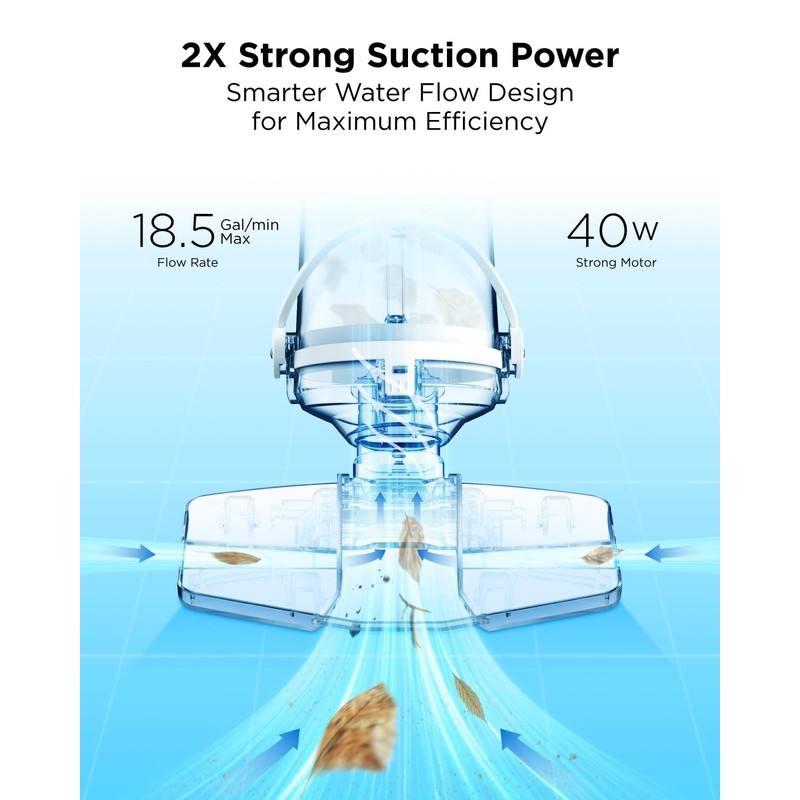 InoKraft Cordless Pool Vacuum Cleaner, Rechargeable, Handheld Pool Vacuum for Above Ground and Inground Pools, Transparent Head, 59” Extendable Pole, for Leaves, Debris, Shallow Steps, Blue