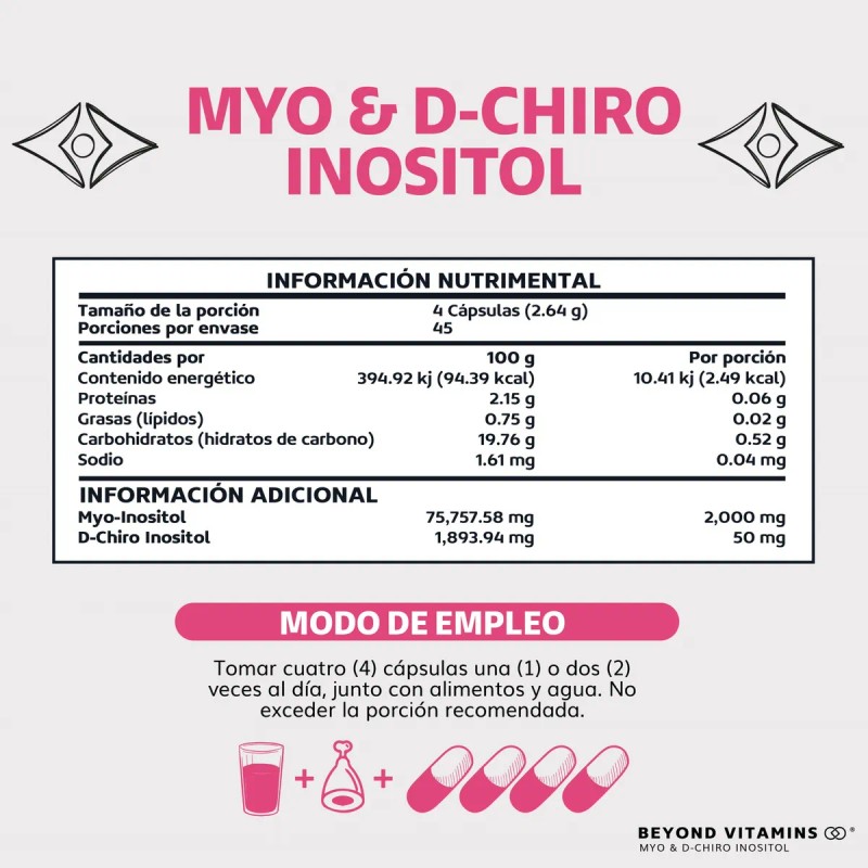 Inositol Capsulas 401 Myo Y D-chiro Inositol 100 Puro Premium En Cpsulas Beyond Vitamins Sin Sabor Myo Inositol - Myo Y D-chiro Inositol Vegano...