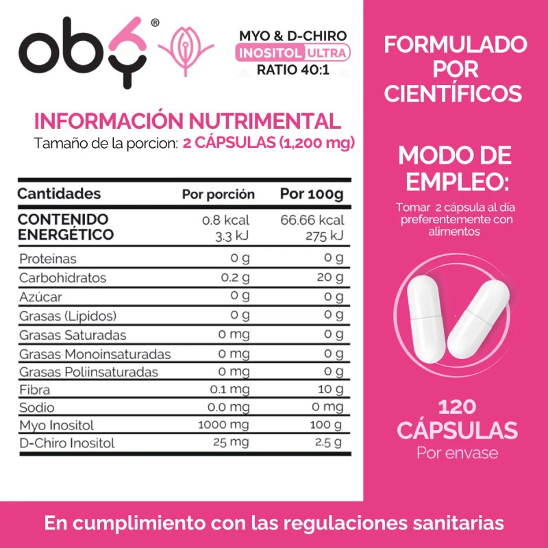 - ¡Descubre el equilibrio integral que tu cuerpo necesita con OBY Inositol cápsulas Ratio 40:1! La fórmula avanzada que las mujeres eligen para potenciar su bienestar y vitalidad todos los días. OBY combina el poder del ratio ideal de Myo Inositol y D