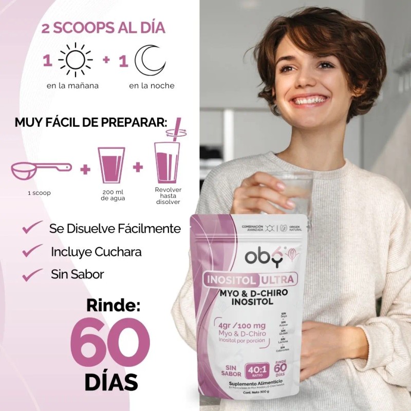 Inositol Ultra 4100 mg porcion 401 Myo Inositol y D-chiro Rinde 60 dias Oby Inositol 100 Ultra Puro Polvo 300gr Vitaminas mujer