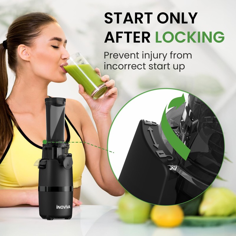 - EASY TO INSTALL AND CLEANThe INOVIVA slow juicer has an original snap-free design. The juice maker is very easy to install and remove, so you don't need to spend a lot of effort to install the clips or any screws. Only three steps are needed to complete the installation and removal. The easy installation design makes it convenient for you to manually deep clean the juicer after use and also supports dishwasher cleaning