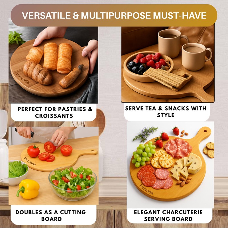 • Multi-Use Cutting Board & Serving Tray: Doubles as a sturdy bamboo cutting board or stylish serving tray for charcuterie, cheese, or snacks, enhancing pizza nights and entertaining.