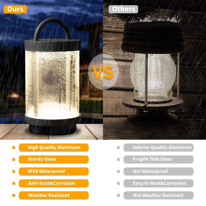 - IP54 waterproof: all-weather resistant, table lighting made of high quality aluminum, so anti-rust & corrosion. Never worry about rain, storm, sleet, snow, ultra high or low temperatures, this table light will still perfect after years of using.