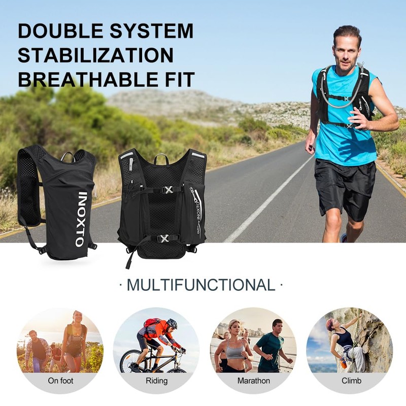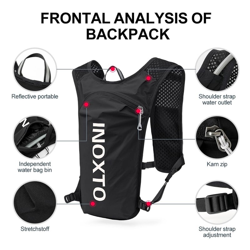 INOXTO Running Backpack, 5-liter lightweight hydration bag for outdoor hiking cross country marathon cycling competition mountaineering water bag backpack for men (black and white)