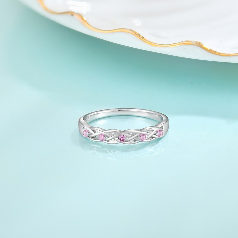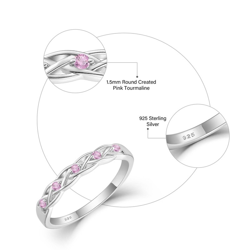 Inpasne Infinity Celtic Knot Ring 925 Sterling Silver Pink Tourmaline October Ring Twisted Knot Statement Rings for Women Size 8