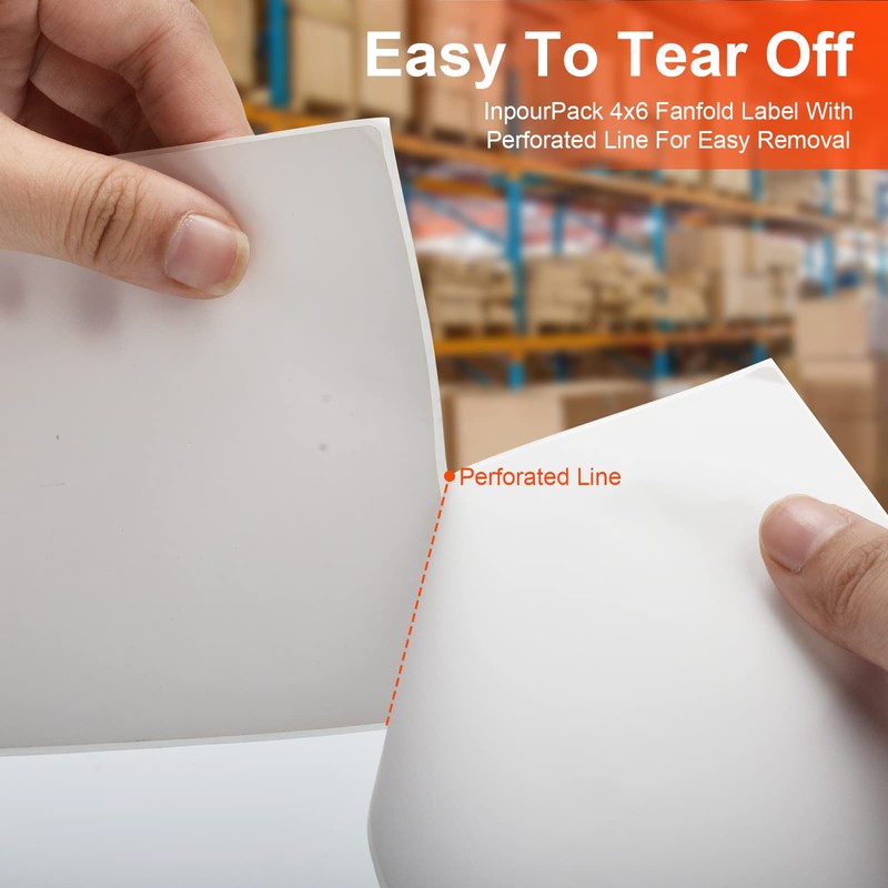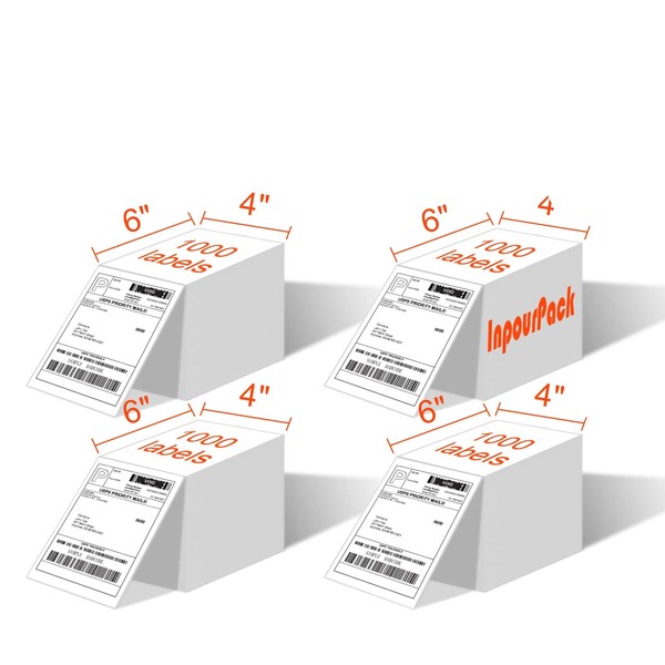 InpourPack 4" x 6" Fanfold Labels Direct Thermal Labels, Shipping Package Labels with Perforated line for Thermal Printers (1000 Labels/Stack, 4 Stacks)