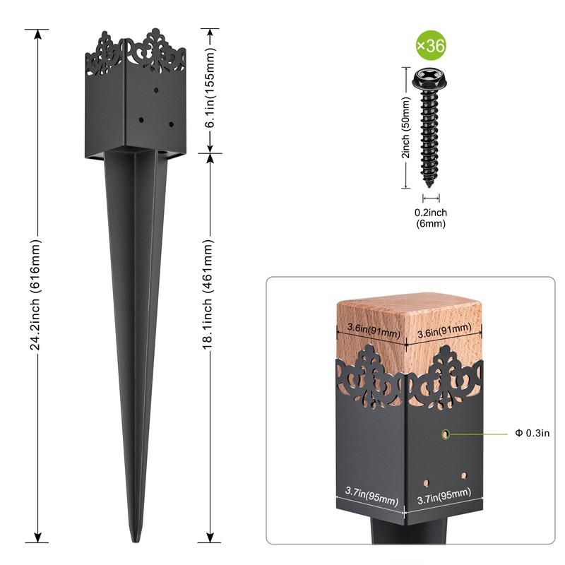 - πΎππ π πΌππ: This fence post spikes 4x4 is the perfect solution for securely anchoring your fence/mailbox/sign/lamp/deck/gazebo/pergola posts and so on to the ground, but also decorative your application.