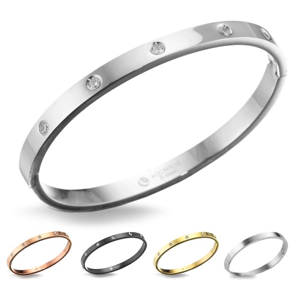 - Winning design: an eye-catching rigid women's bangle, the perfect compromise between modernity and sophistication. The special tone of the steel gives the bangle a great attraction, which in combination with the existing light points creates a stunning effect. Worn alone, it is beautiful and elegant. If you want to attract more attention, you can wear several bangles together even in different colors to make them "ring" when touched.
