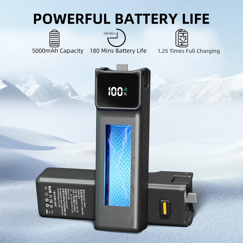 • 【5000mAh Large Capacity Battery handle】Equipped with a built-in 5000mAh battery, the battery handle for Pocket 3 provid nearly 180 minutes of additional battery life and can fully charge your Pocket 3 camera 1.25 times