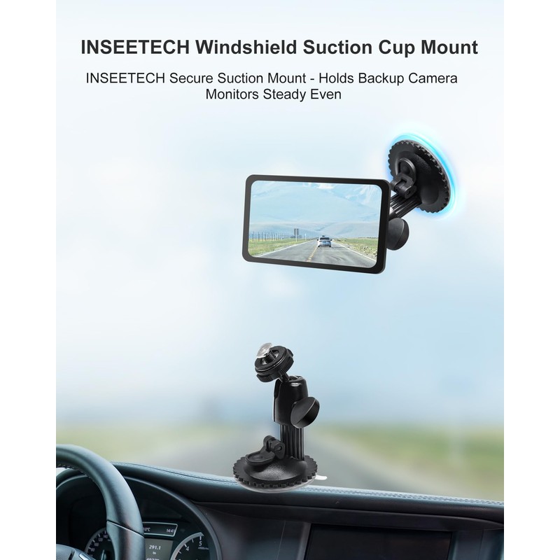INSEETECH Windshield Suction Mount for Backup Camera Monitor - Heavy-Duty 5kg Load Capacity, Metal Construction, 360° Adjustable Ball Head, No Drill Easy Install for Car/RV/Truck