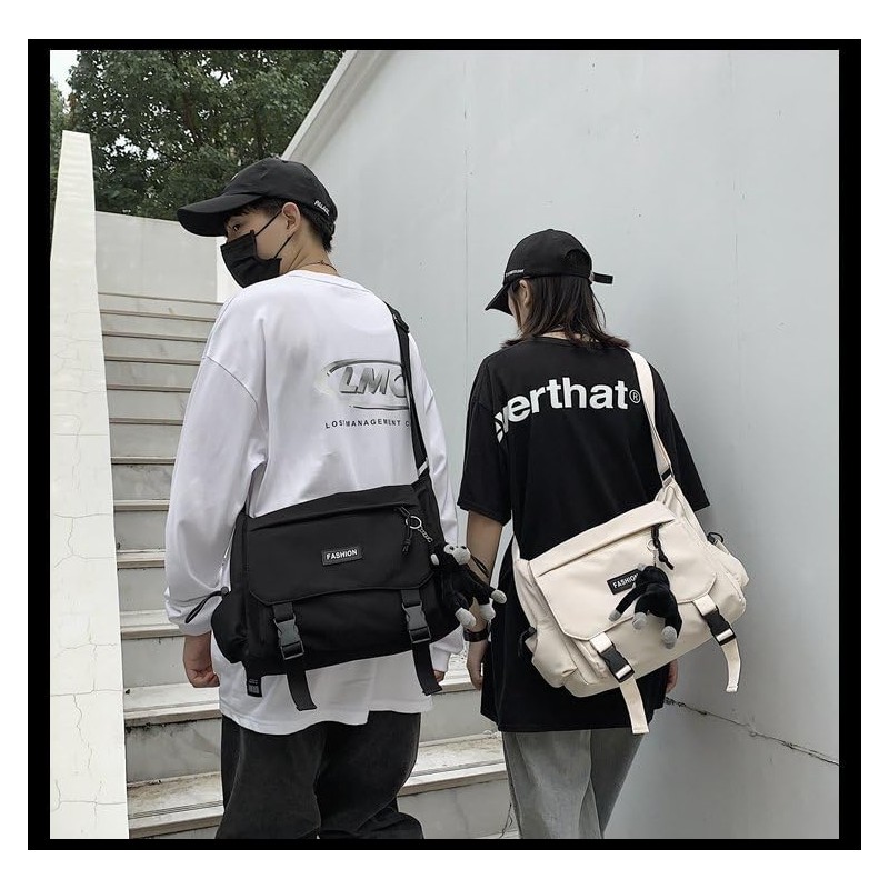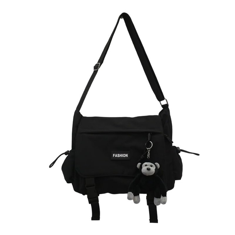 Inshere Aesthetic Crossbody Bag with Cute Ornament, Casual Shoulder Messenger Bag Japanese Kawaii Bag for Women Men Black