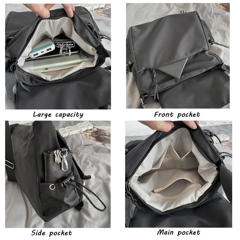 - Large Capacity- Product Size: 12.5x11.4x5.11 Inches.This japanese bag has multiple pockets and has two water bottle pockets. can hold the laptop, binders, A4 magazine, book, wallet, phones, lipsticks etc. personal items suitable for your needs, travel light and elegant.