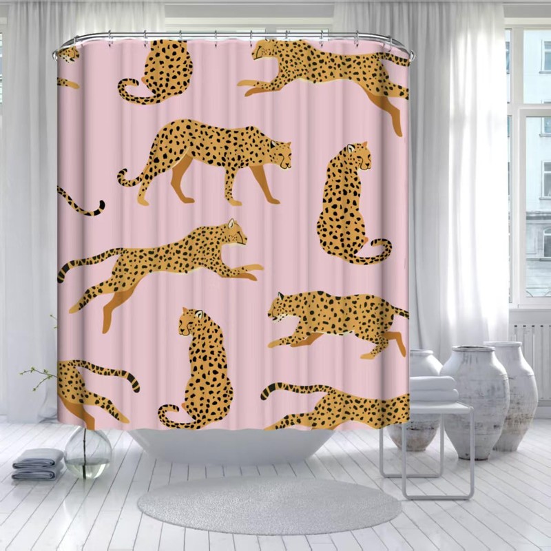 Inshere Cute Leopard Shower Curtain with 12 Hooks Pink Cheetah Animal Bathroom Curtain 72x72 Inch Waterproof