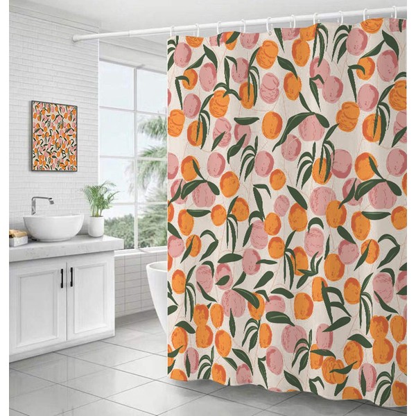 Inshere Decorative Peach Shower Curtain Waterproof Polyester Fabric, Home Bathroom Decor Fruits Hanging Curtain with Hooks 72 by 72 Inch, Hotel Quality, Machine Washable