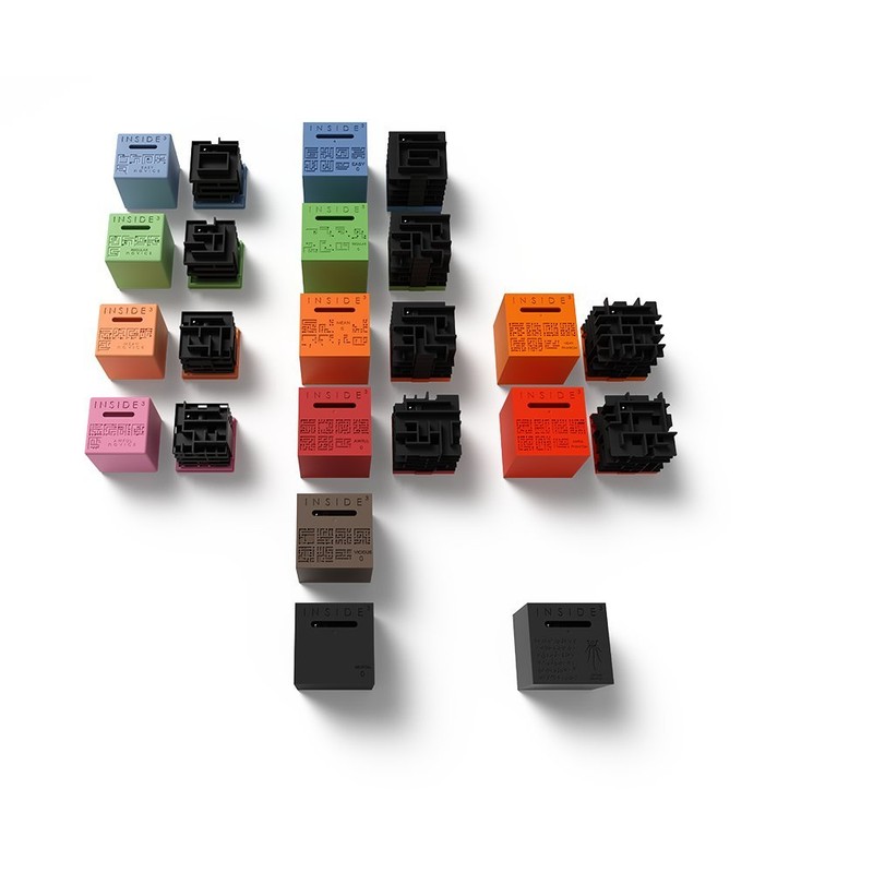 - A labyrinth hidden inside a cube. Release the ball and watch it disapear. Then try to bring it to the other side.