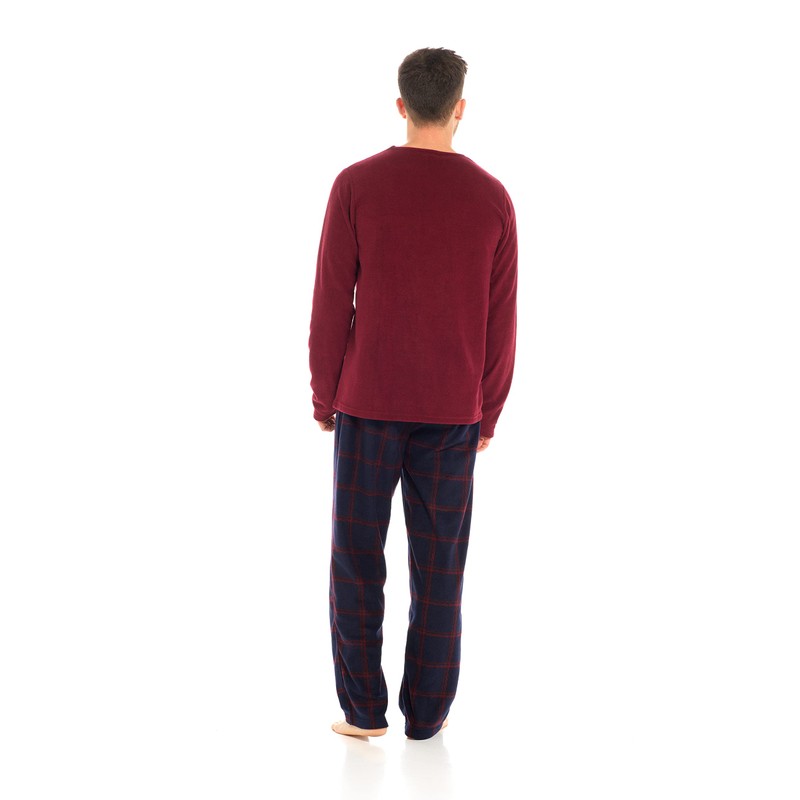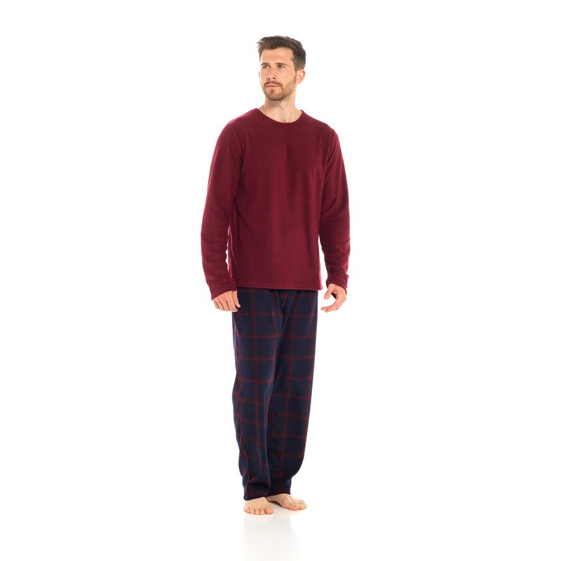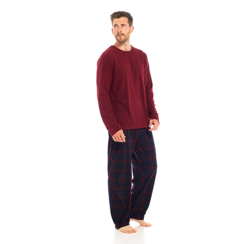 INSIGNIA Mens Fleece Long Sleeve Top Pyjamas Sets (Wine-Navy, XL)