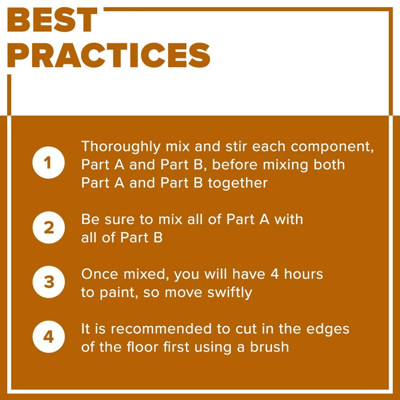 Garage Guard Waterborne garage floor epoxy is a water-based catalyzed garage floor paint which offers performance equal to traditional solvent based epoxy systems. It provides superior chemical, abrasion and impact resistance when compared to conventional waterborne epoxies. The highly cross-linked film provides years of garage floor coating service. This product may be applied in occupied areas, and is a more user friendly epoxy floor coating. Additionally, this epoxy garage floor paint may be applied to most generic coating types without the fear of lifting or wrinkling when creating your new epoxy garage floor coating. This is a two component product with a mix ratio of 3: 1. It requires 3 parts of the proper “A” or base component (under filled gallon can) mixed with 1 part of the proper “B” or converter component (quart). Mixing of partial kits is not recommended. Garage Guard Waterborne Epoxy is designed for use as an epoxy basement floor paint, garage floors, epoxy concrete floor coating in basements, and other concrete surfaces. Ideal for use in food and beverage processing, transportation, warehouses, industrial refurbishment, healthcare, schools, large commercial structures, industrial and commercial flooring, and other areas where a performance epoxy is needed.