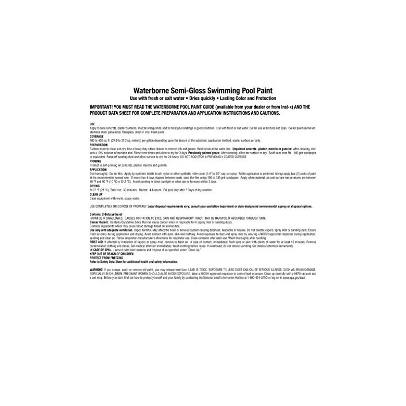 - Before painting, review the INSL-X Waterborne Pool Painting Guide for proper preparation and application tips.