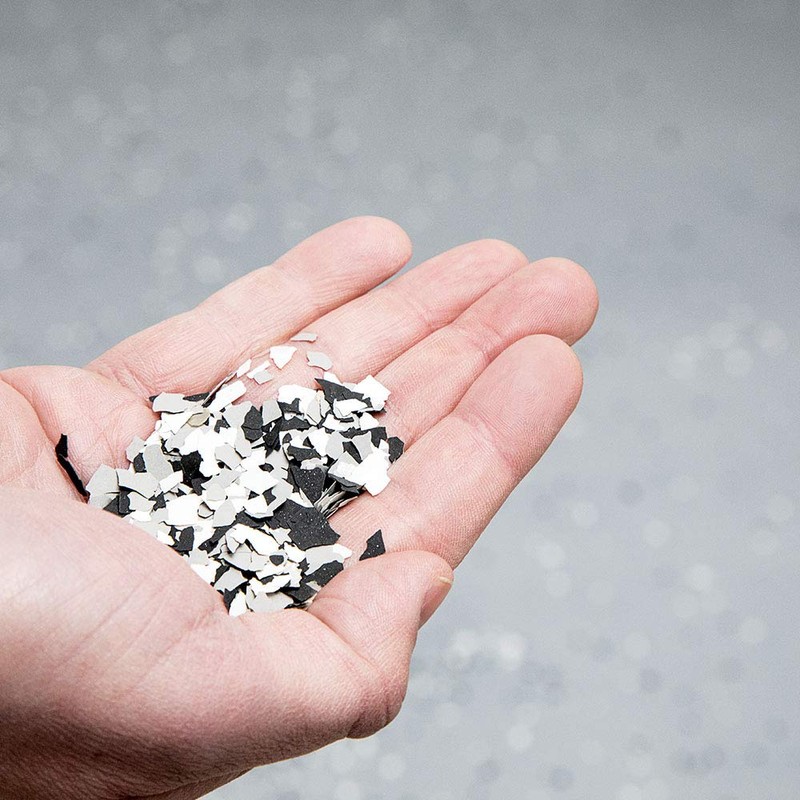- Color flakes for interior/exterior use using colorfast, UV stable pigments.