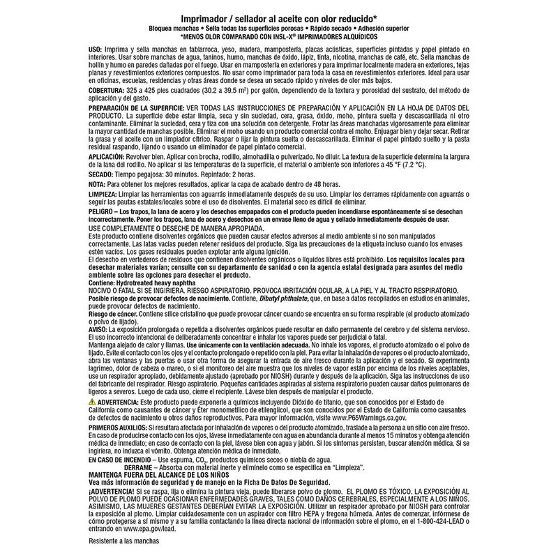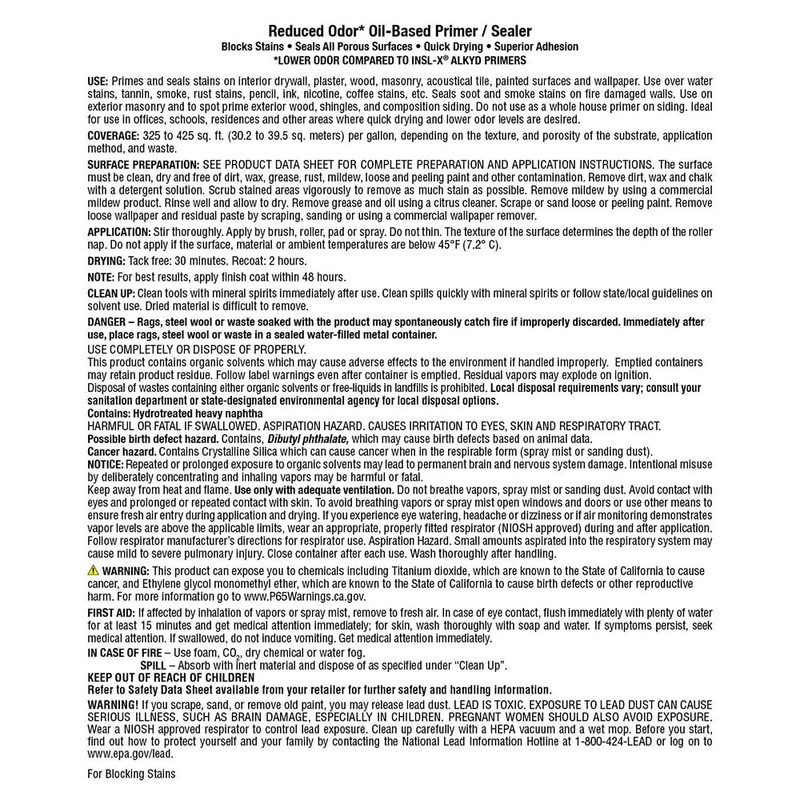- Before painting, review the INSL-X Reduced Odor* Oil-Based Primer label for proper preparation and application tips