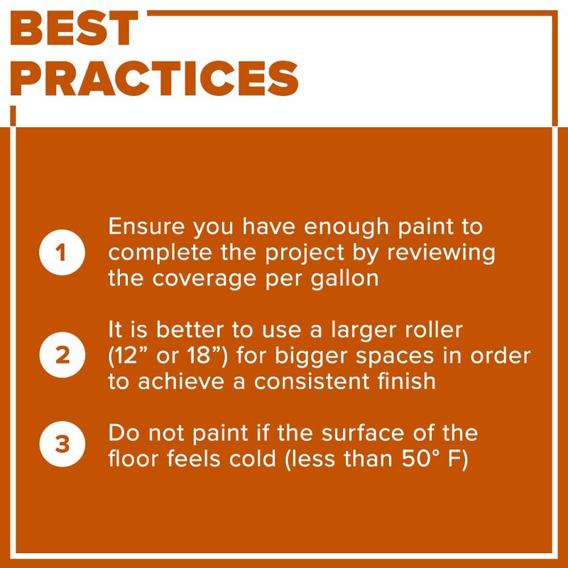 - Interior/exterior floor coating, porch and patio floor paint for light commercial as well as residential floor applications DO NOT USE ON GARAGE FLOORS OR CAR PARKING SURFACES.