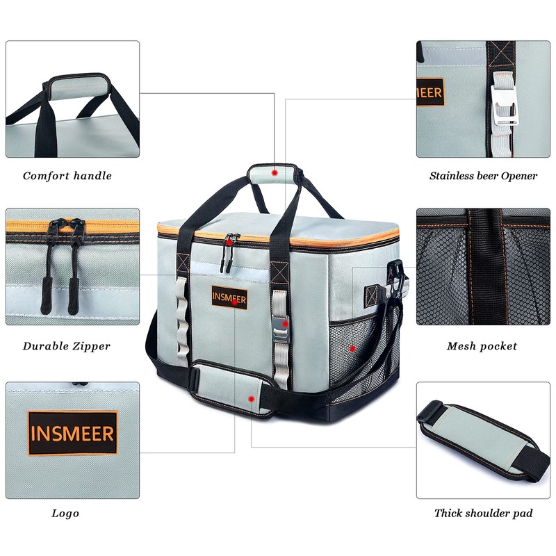 INSMEER Insulated Cooler Bag 65Cans/32 Cans Large Cooler Bag Soft Sided Cooler with Shoulder Strap, Collapsible Leakproof Portable Coolers for Camping/Beach/Food Delivery/Shopping/Outdoor/Picnic