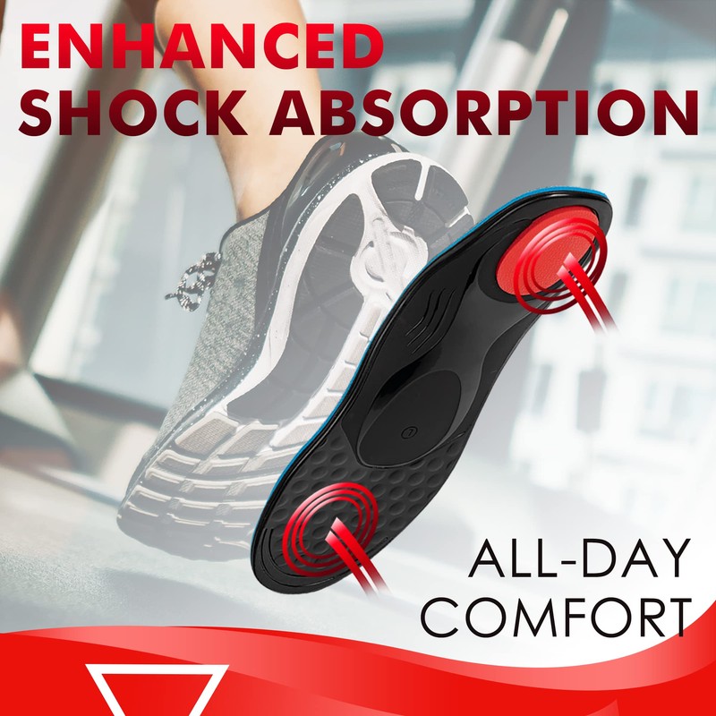 - 【EFFECTIVELY RELIEVE FOOT PAIN】These supportive shoe insoles are ideal for mild to medium flat feet, plantar fasciitis, pronation, metatarsal pain, heel spur and arch discomfort, foot pain, fatigue, shin splints and other common foot symptoms. The insole will quickly eliminate foot pain