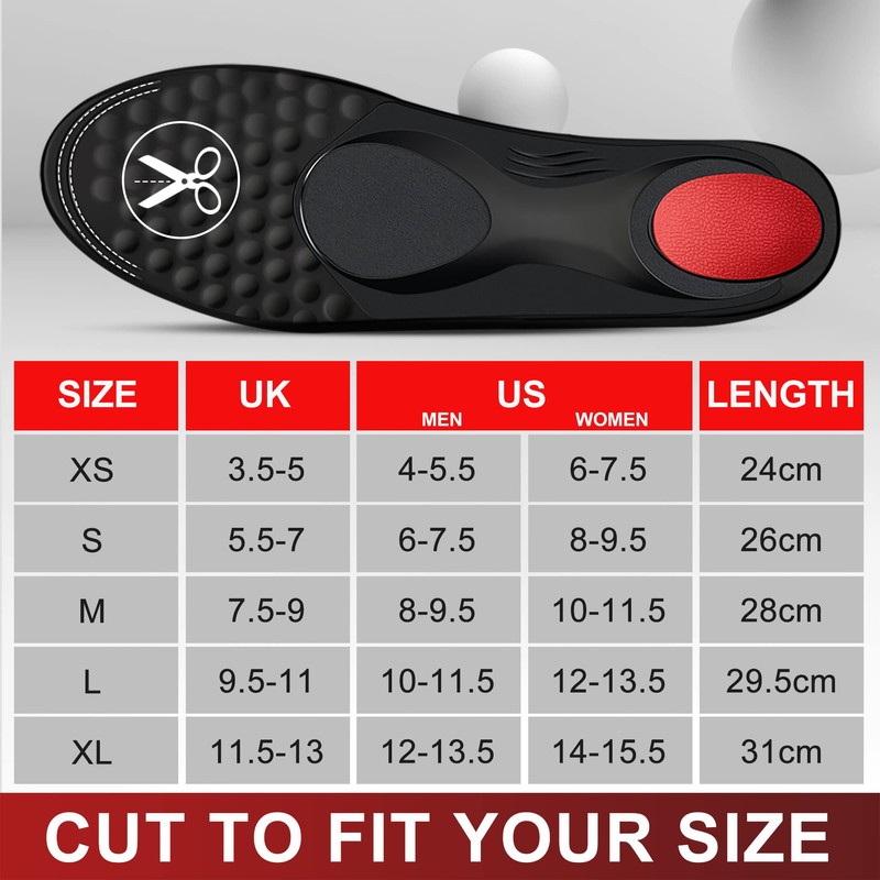 - 【RISK FREE】 Select the size and cut to fit your needs. The moderate thickness of 5mm insoles fits most shoes, such as sneakers, work boots, some casual and formal shoes, but there are individual differences. If you are not sure about the insoles or need support, please contact us anytime. We always stand by you