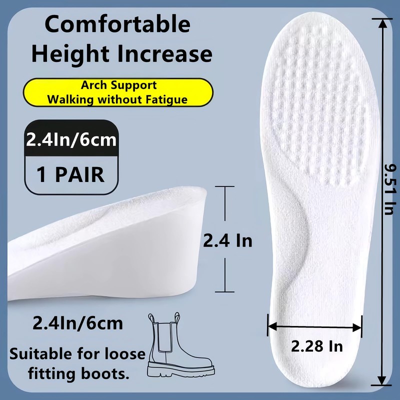 - ❤【Comfortable Shock Absorption Without Tiring Feet】The height increase insolesis fit snugly against the sole of the foot, with arch support, providing a comfortable foot feel and preventing foot fatigue.There are various heights for height boosters, and you can choose the appropriate height according to your shoe type. The larger the space, the higher the insole height that can be accommodated in the shoes,suitable for sports shoes, casual shoes, high top shoes, boots.