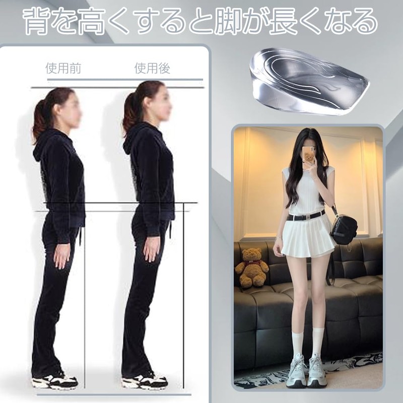 Insole, Secret Legs Insole, Height Up, Sole, Heel Cushion, Secret, Sweat Absorbent, Flexible, Elastic, Breathable, Shock Absorption, Height Increase, Foot Length Effect, Reduces Fatigue, Unisex (3.7 x