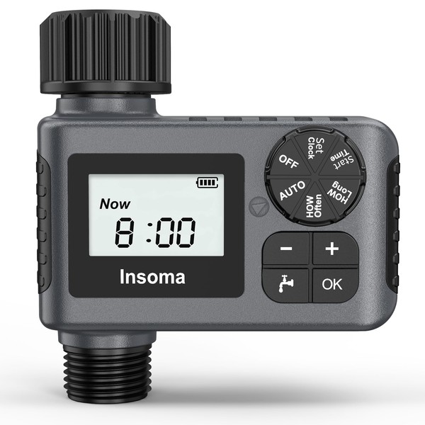 - Long-lasting & Durable Insoma water hose timer is made of IP55 waterproof material and added a seal ring in the battery cover to isolate moisture. The material of hose timer's connector is added 35% fiber, which can withstand high water pressure from 7.25 psi to 116 psi. Each sprinkler timer is equipped with an additional reducing hex bushing (3/4" Male NPT to 1/2" Female NPT) and thread seal tape to fit different size hoses or faucets to prevent it from leakage.