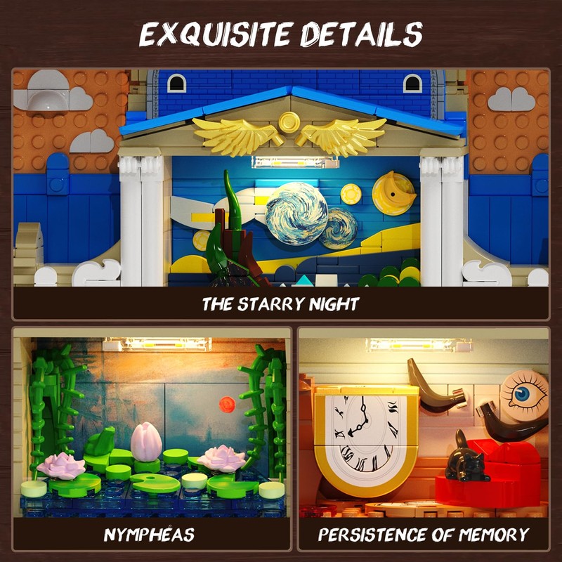 - Warm LED Lights - This art sets for adults includes built-in lighting elements that bathe each masterpiece in a warm, gentle glow, highlighting its intricate details. Whether placed in your living room, study, or on a bookshelf, it turns into an elegant home décor piece, elevating any space with artistic charm. More than just a build, it’s a way to preserve iconic art in brick form—blending creativity, craftsmanship, and the beauty of timeless masterpieces into a display you’ll admire every day