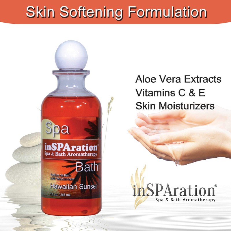 This Hawaiian sunset spa and bath fragrance is a great way to enhance your spa, hot tub and bath experience. Contains scents of tropical fruits and herbs and has a unique formula allowing you to add it directly to the water without causing foam build up. Use to keep away chemical odors. Made with moisturizers leaving your skin feeling soft. Its non-foaming formula safe for all surfaces. Comes in 9-ounce bottle. Includes 12 bottles per pack.