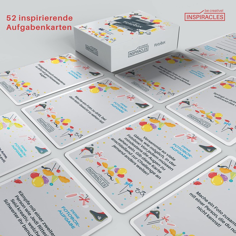 Inspiracles 52 Photo Box Tasks - Photo Tasks on Cards, Photo Game Wedding, Company Party, for Use with a Photo Box