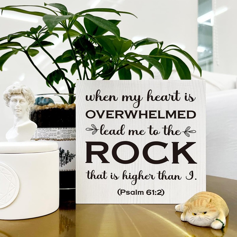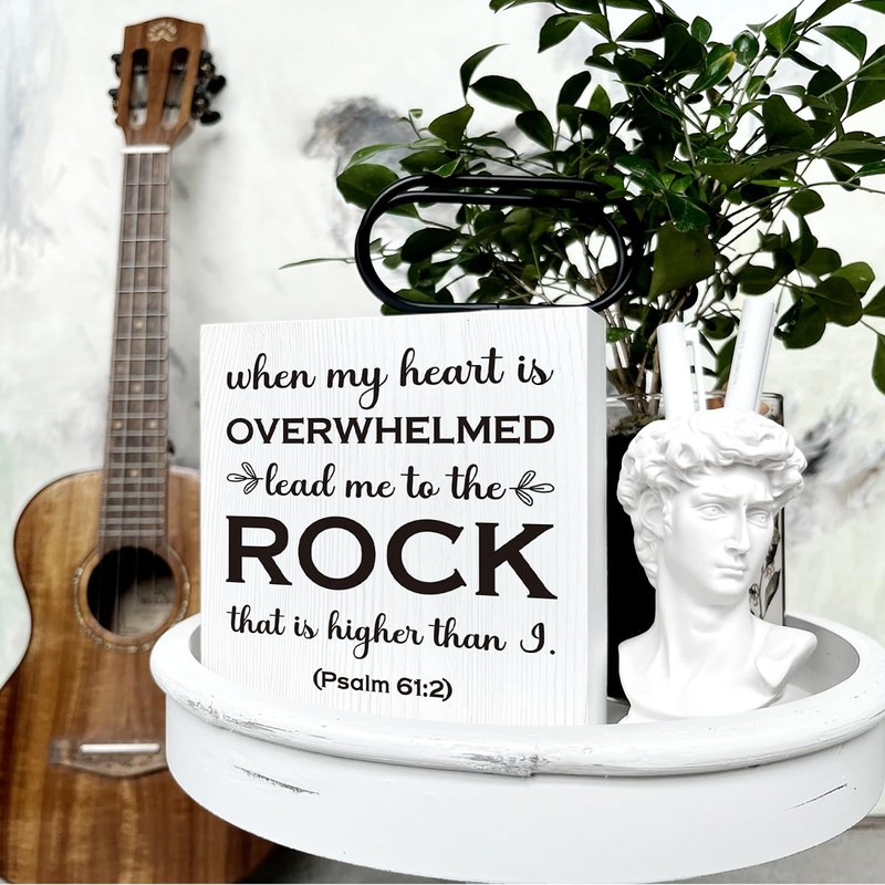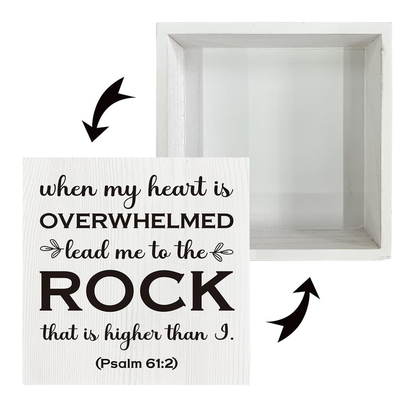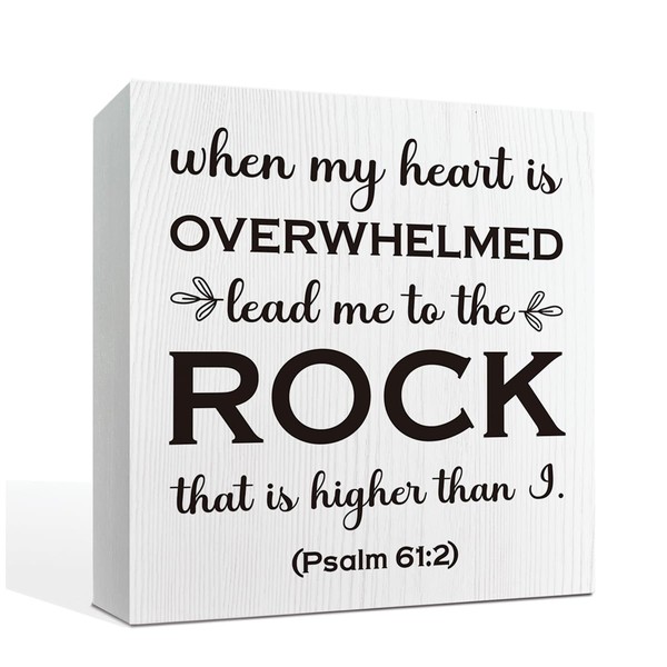 Inspirational Christian White Wood Box Sign for Desk, Christian Sign, Farmhouse Home Office Desktop Deocr, Rustic Home Deocr, Psalm 61:2 Bible Verses Wooden Box Signs