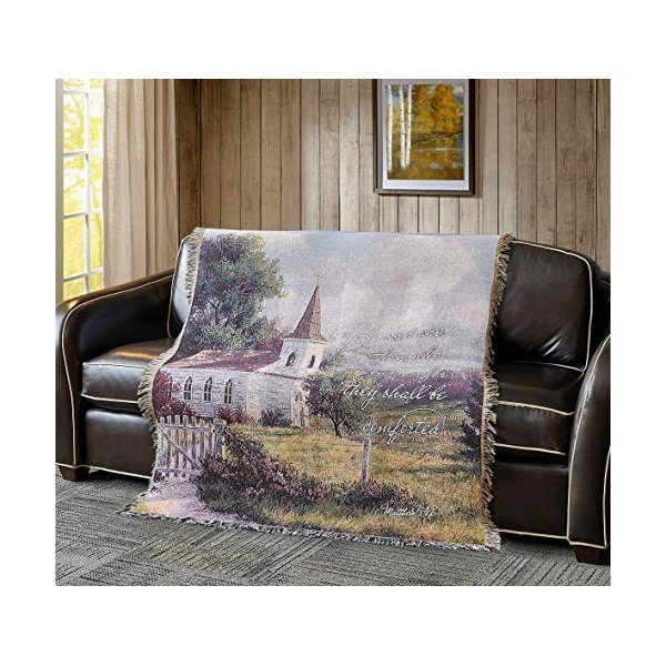 Inspirational Tapestry Throw Blanket by Virah Bella - 50" x 60" Blessed are Those Who Mourn Matthew 5:4 Fringed Woven Tapestry Throw - Cozy & Beautiful Religious-Themed Blanket
