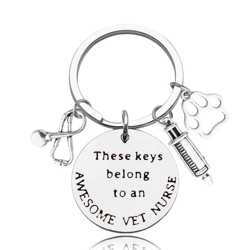 - High Quality Thank You Gifts for Vets: The vet nursing keyring is made of high quality stainless steel, pretty strong and sturdy, engraved by laser which is pretty clear, won't rust and fade, will as new as long time use, absolutely won't lose keys, vet nurse leaving farewell gifts for men women, vet thank you gift for vet best friend bestie