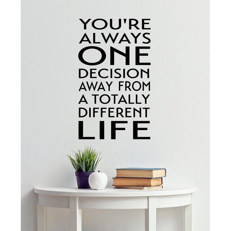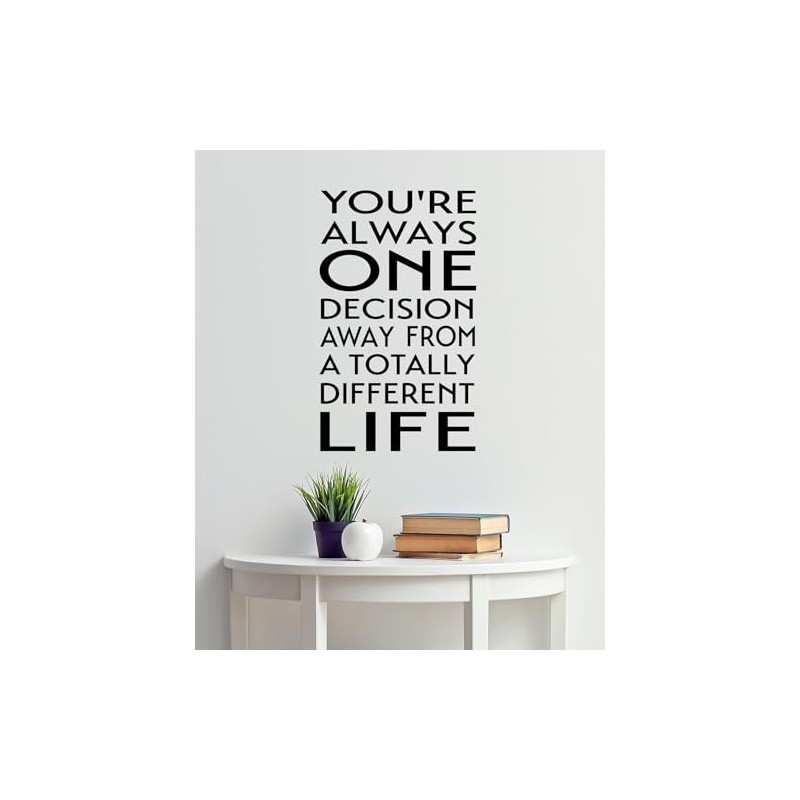 Inspirational Vinyl Wall Quote - "You're Always One Decision Away From a Totally Different Life" - Motivational Home Decor | 12 x 20 inches | Black Matte