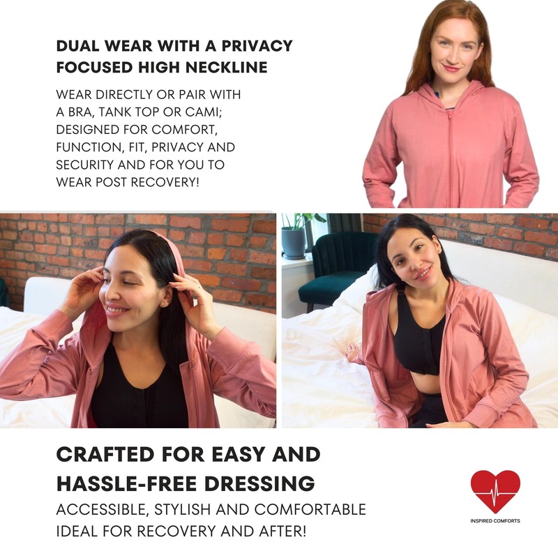 Inspired Comforts Mastectomy Recovery Hoodie with Drain Pockets, Rose Pink, Medium