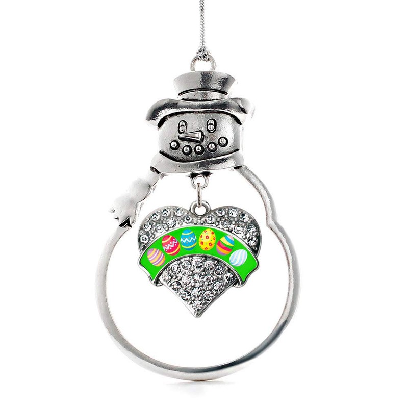 Inspired Silver - Easter Eggs - Silver Christmas Ornament - Pave Heart Charm Christmas Tree Ornament with Cubic Zirconia - Snowman Hanging Decoration