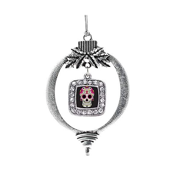 Inspired Silver - Sugar Skull Charm Ornament - Silver Square Charm Holiday Ornaments with Cubic Zirconia Jewelry