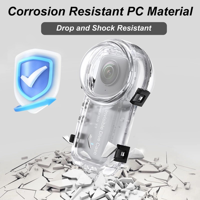 - 【WATERPROOF】Use Insta 360 X3 invisible waterproof housing case, very good sealing performance, Water resistant to 50 m. you can take your 360 X3 action camera up to 164ft (50m) deeper underwater