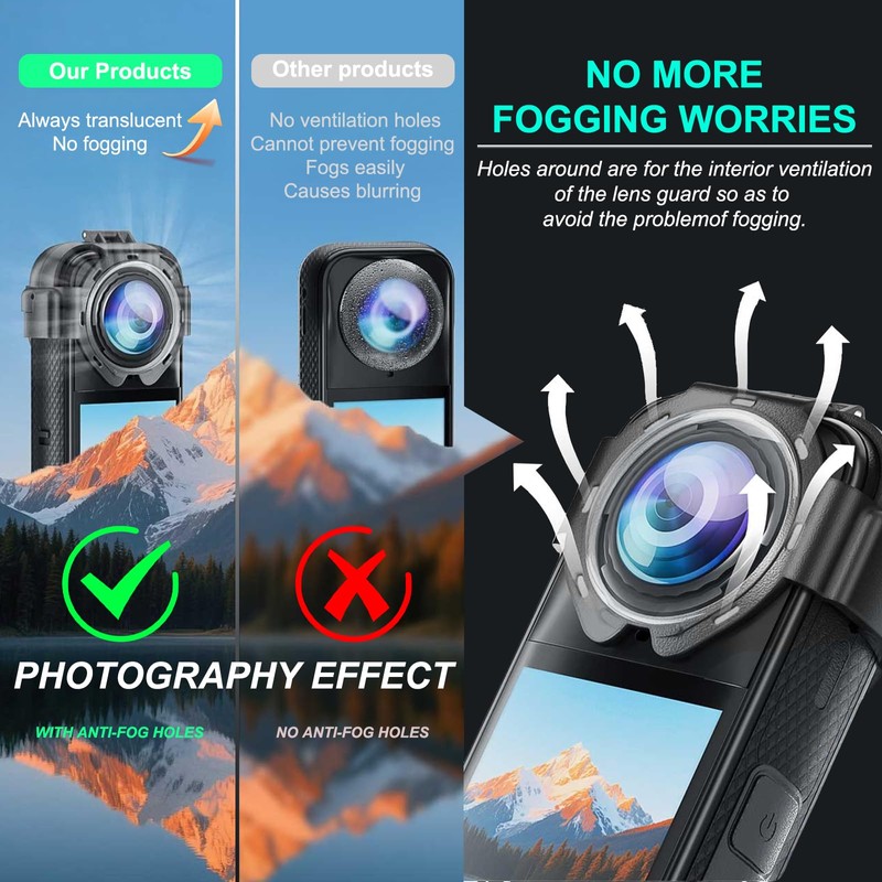 - Easy to install and remove: the lens cover is specially designed for Insta360 X5, not fit for other camera models, real machine open shape, with a buckle installation fit for the camera, easy to install and remove