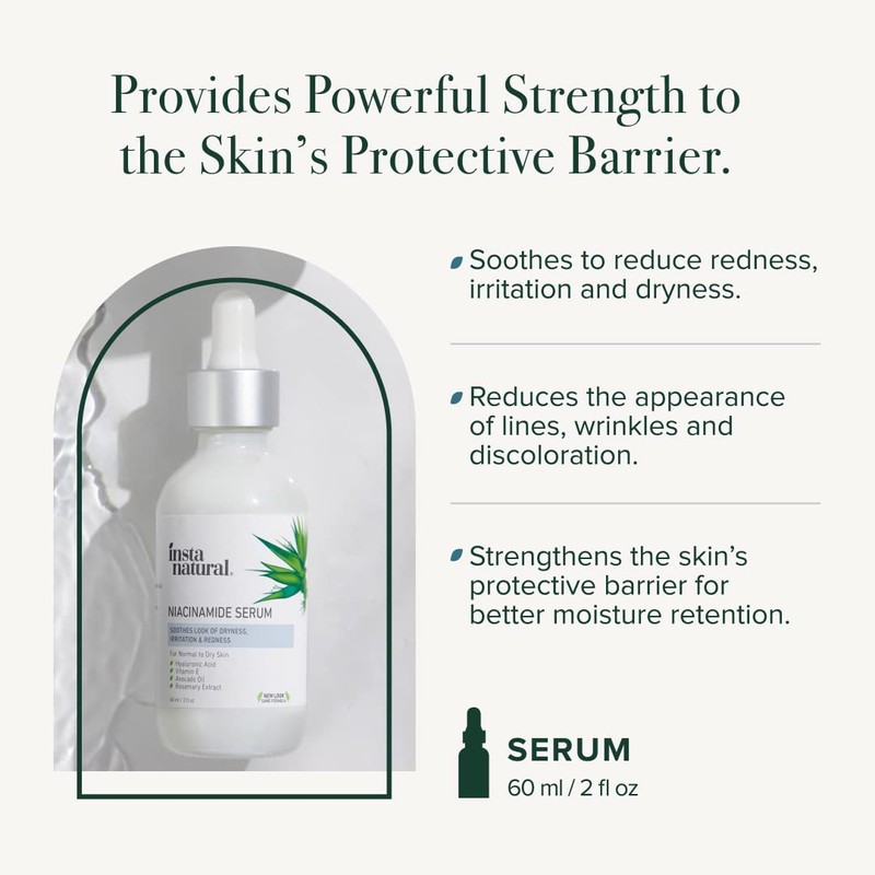 InstaNatural InstaNatural Niacinamide Face Serum, Hydrates, Soothes, Reduces Irritation, Redness, Lines, Wrinkles, and Other Signs of Aging, with Hyaluronic Acid and Vitamin E, 2 Fl Oz