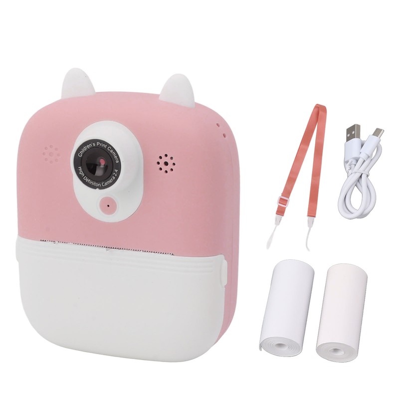 1、Dual Lens Camera: Adopts a dual front and rear camera design, which can take photos on time; Combination of HD dual camera and photo recording, which can automatically optimize the shooting of photos at a 5 second timer; It comes with a printer, which allows you to take photos and print them, as well as DIY self coloring. 2、Filter Options: The camera provides a variety of special effect expression options; It comes with 28 frame designs and 6 filter effects to stimulate children's creativity. One click HD video recording. 3、Face Recognition: The product supports AI intelligent photo taking and face recognition technology, which can automatically focus, adjust colors and dimming. It not only takes photos, but also supports intelligent games and music formats. 4、USB Charging: This camera uses USB charging for battery life, making it convenient, fast, and long lasting. It supports up to 32GB of memory cards(not included). 5、Comfortable Feel: The product adopts a non angular design with a comfortable feel. The rounded design of the body maintains comfortable grip while gently caring to prevent babies from scratching their hands during use. The surface anti blue light coating can effectively reduce the wavelength of blue light radiation.