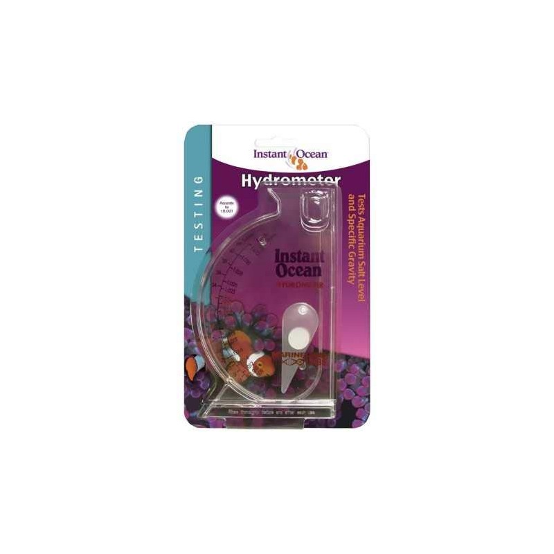 Instant Ocean Hydrometer is accurate, reliable water test equipment is absolutely vital to creating and sustaining a healthy, successful marine environment. Easy to read and simple to operate, the Instant Ocean Hydrometer delivers precise full-range salinity and specific gravity readings - accurate to 0.001 - and does it each time, every time. Product Features Accurate to 0-001 Durable, Permanent Needle Mount Easy-Read, 2-Color Scale with Safe Zone Extra-Wide Stabilizer Base Easy Fill convenience -- NO WET HANDS!